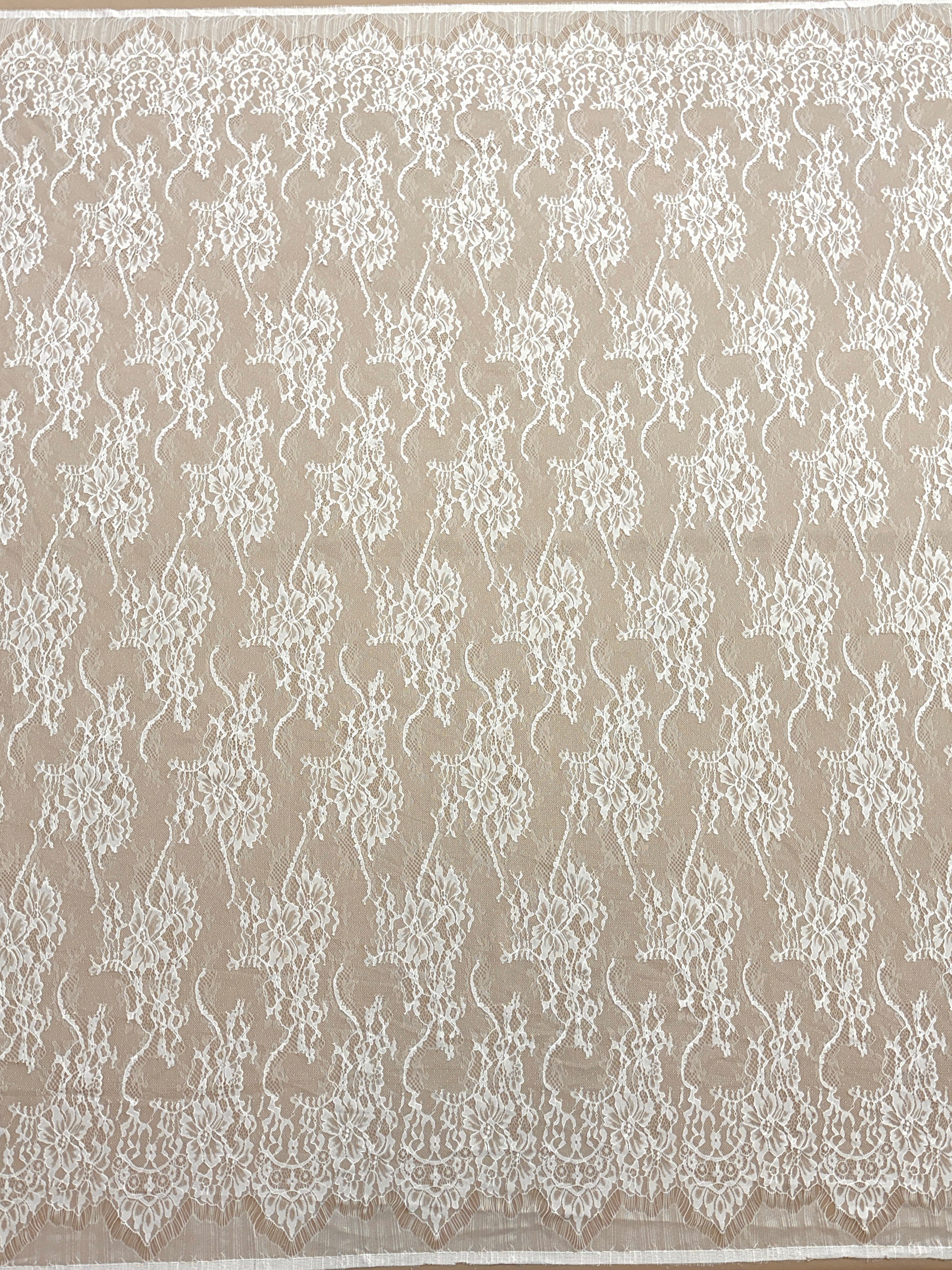 Kupon formájában szállítva ez a Chantilly csipke maximális rugalmasságot kínál látványos ruhaprojektekhez, ezért kedvelt választás tervezők, műhelyek és couture alkotók körében.