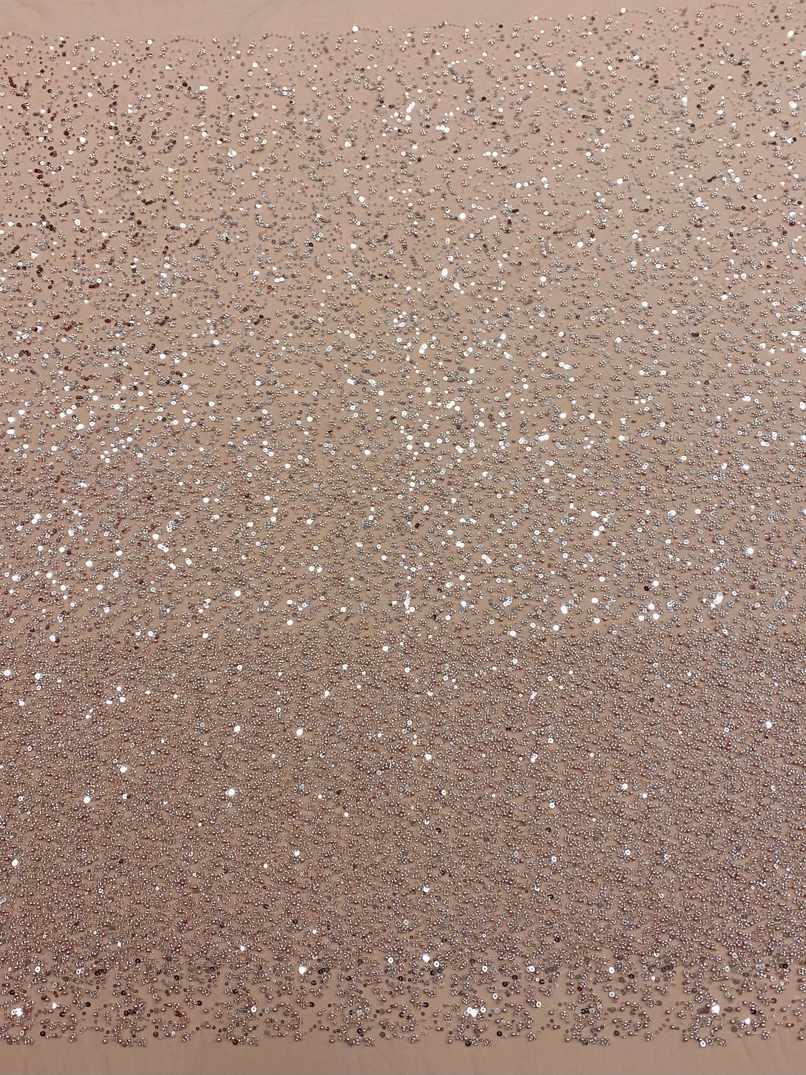 Csipke Couture arany rózsaszín átmenetes, gyöngyökkel, gyöngyökkel és flitterekkel
