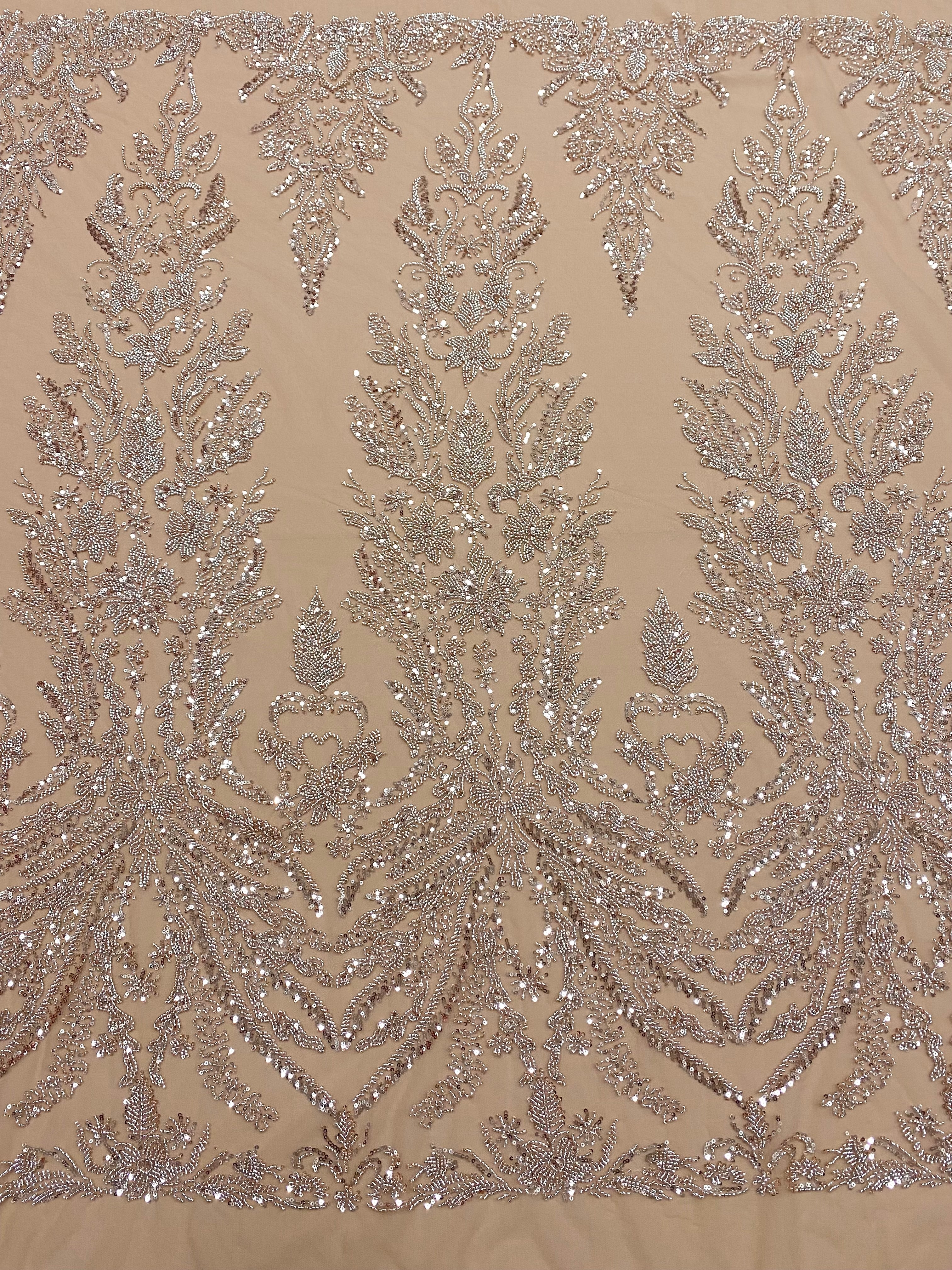 Csipke Couture Arany Rózsa Virágmintával, Gyöngyökkel és Flitterekkel