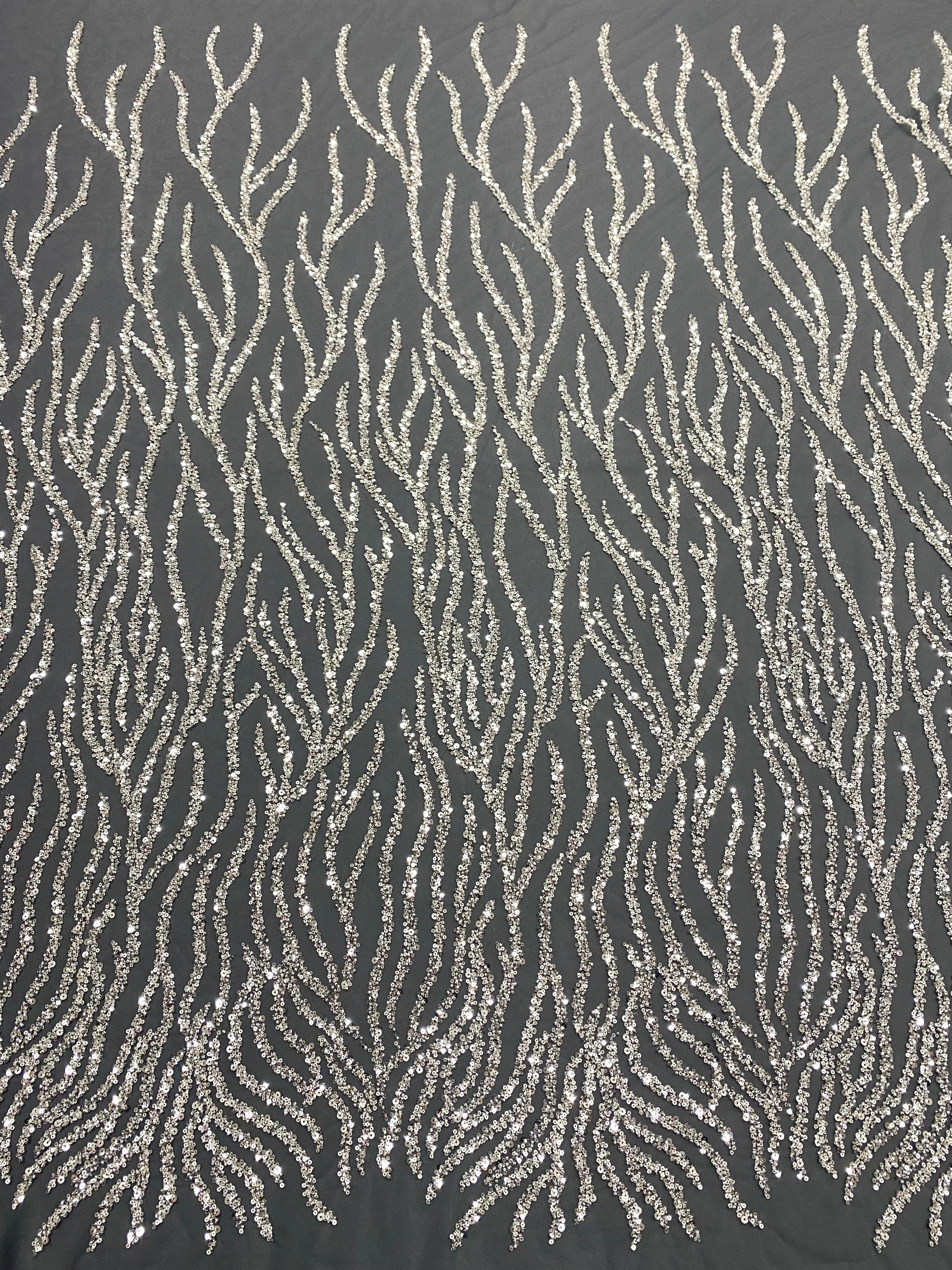 Csipke Couture ezüst tüllön antracit színben, gyöngy- és flitterfüzérekkel, gyöngyökkel és flitterekkel