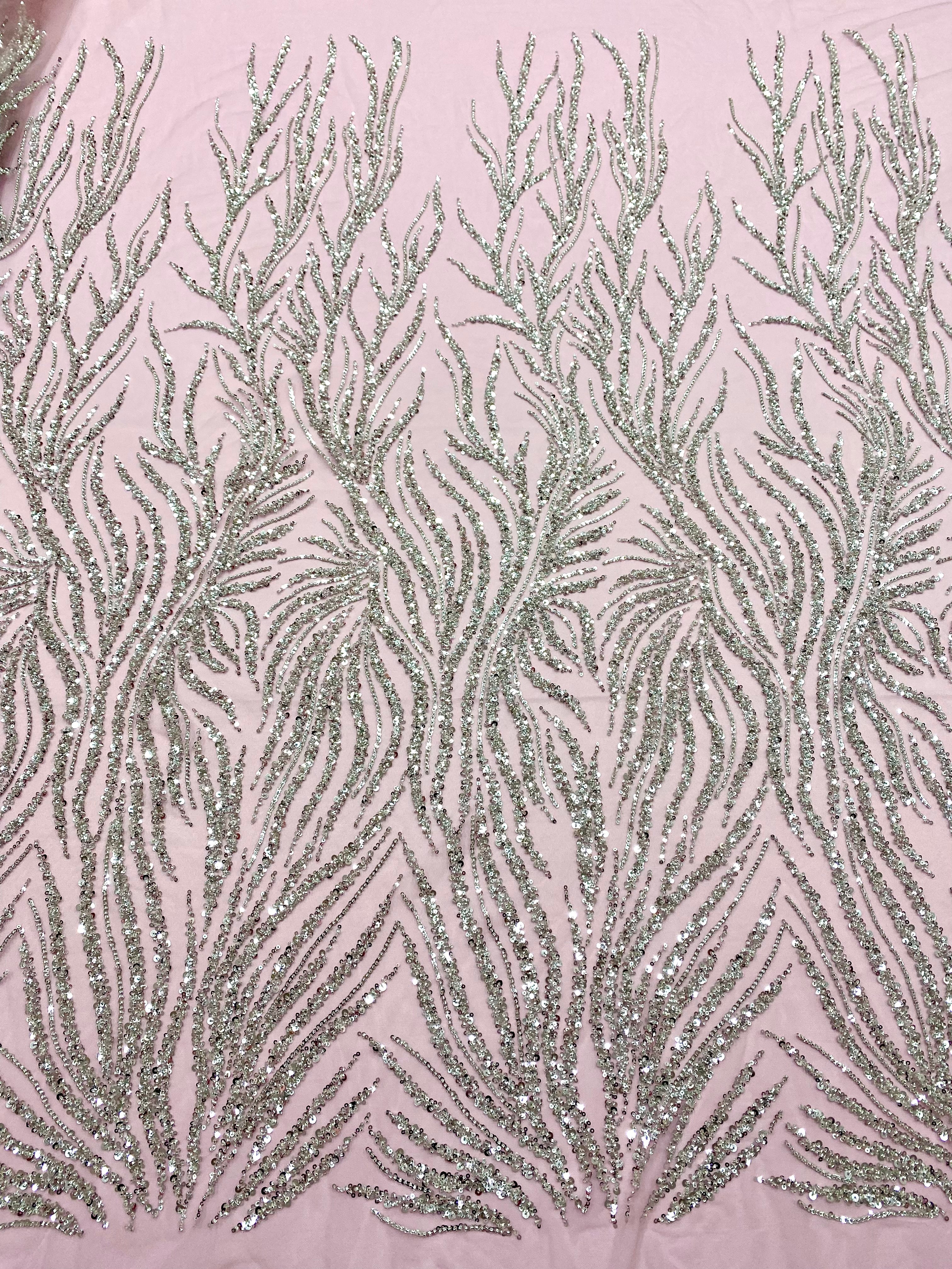Ezüst Couture Csipke Rózsaszín Tülllel, Gyöngyökkel és Flitterekkel