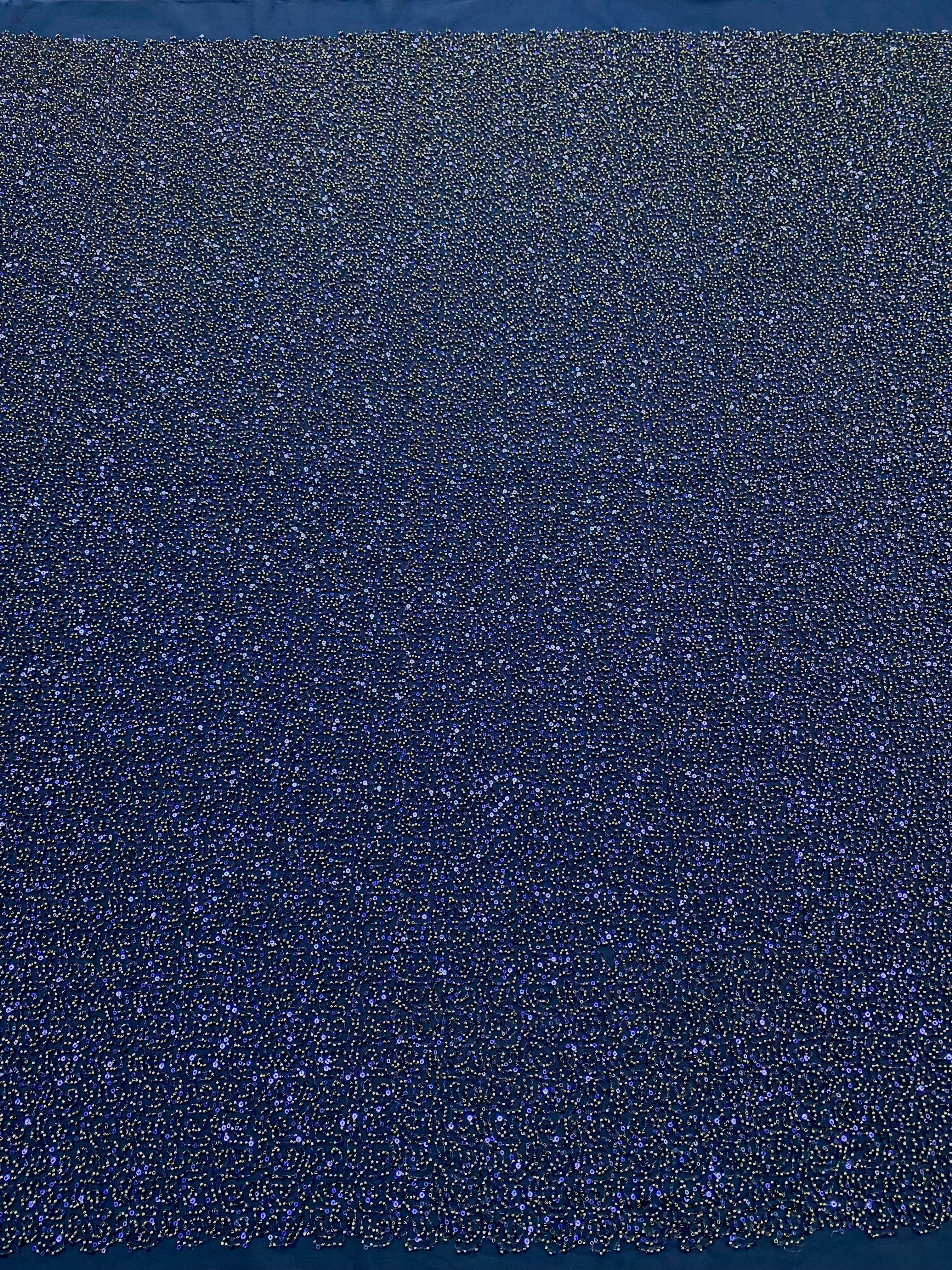 Dantela Couture Tengerészkék Általános Mintával, Gyöngyökkel és Flitterekkel