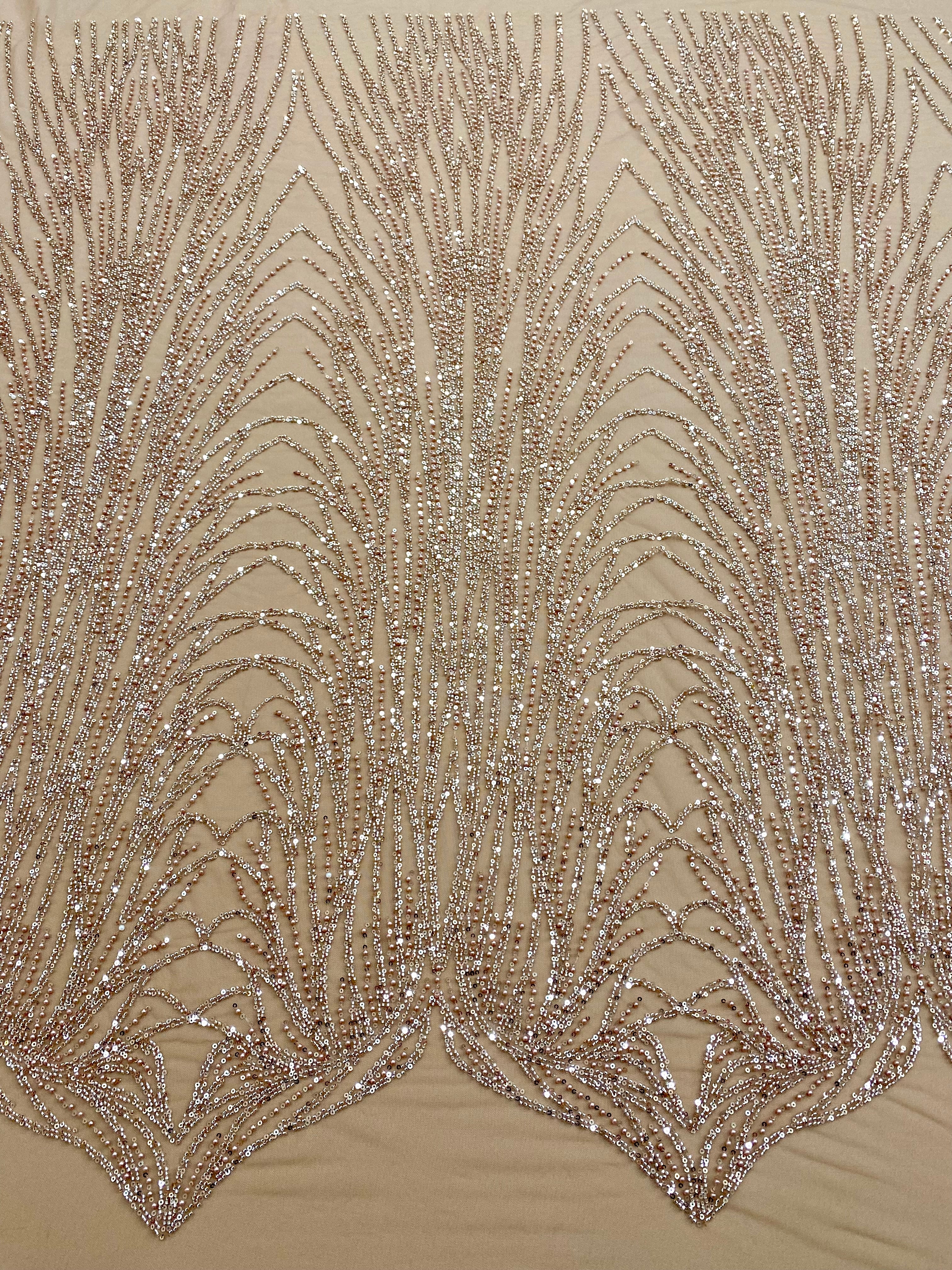 Dantela Couture Auriu Rose cu Model Liniar, cu Margele si Paiete