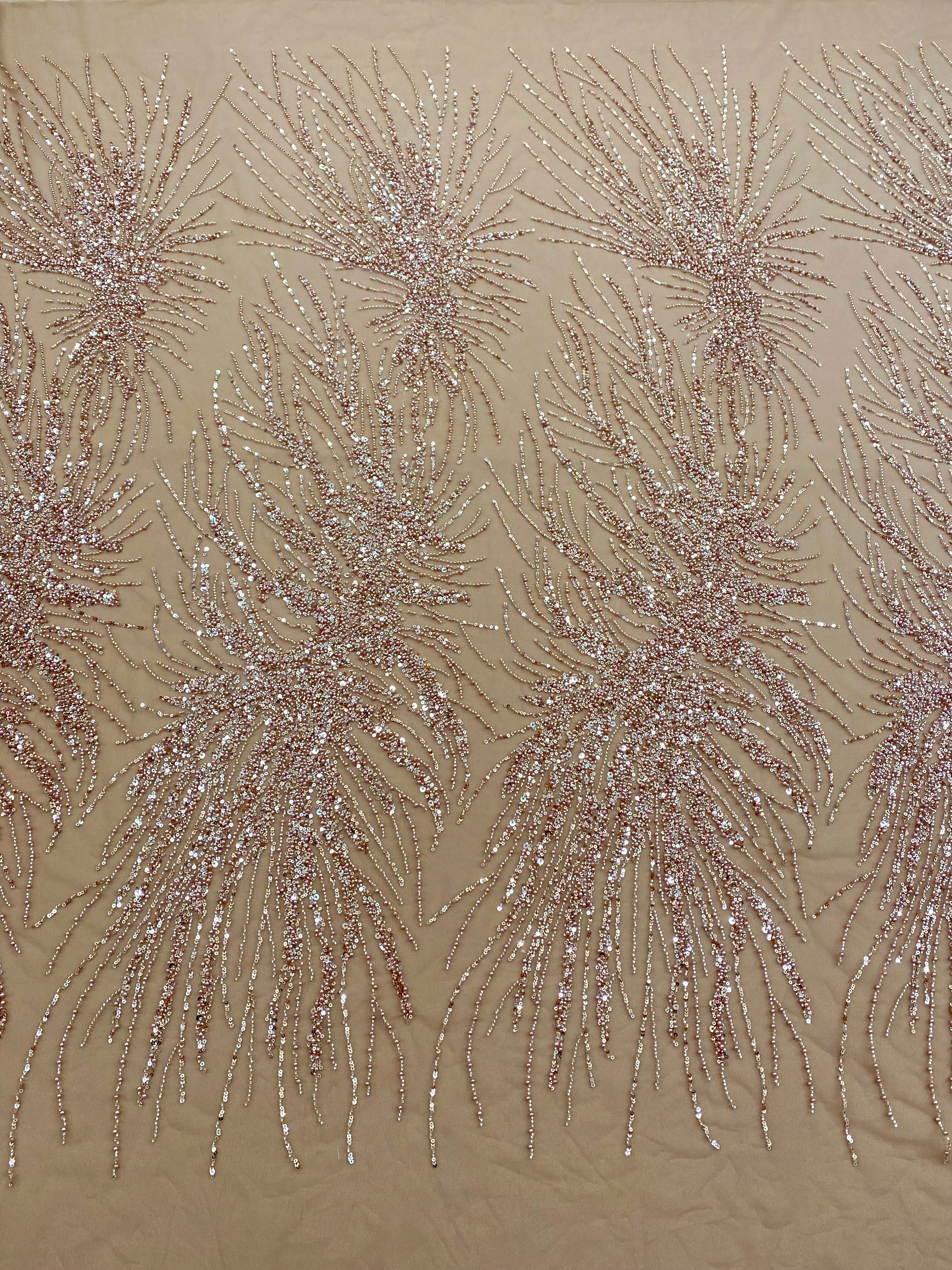 Dantela Couture Auriu Rose cu Model Liniar, cu Perle, Margele si Paiete
