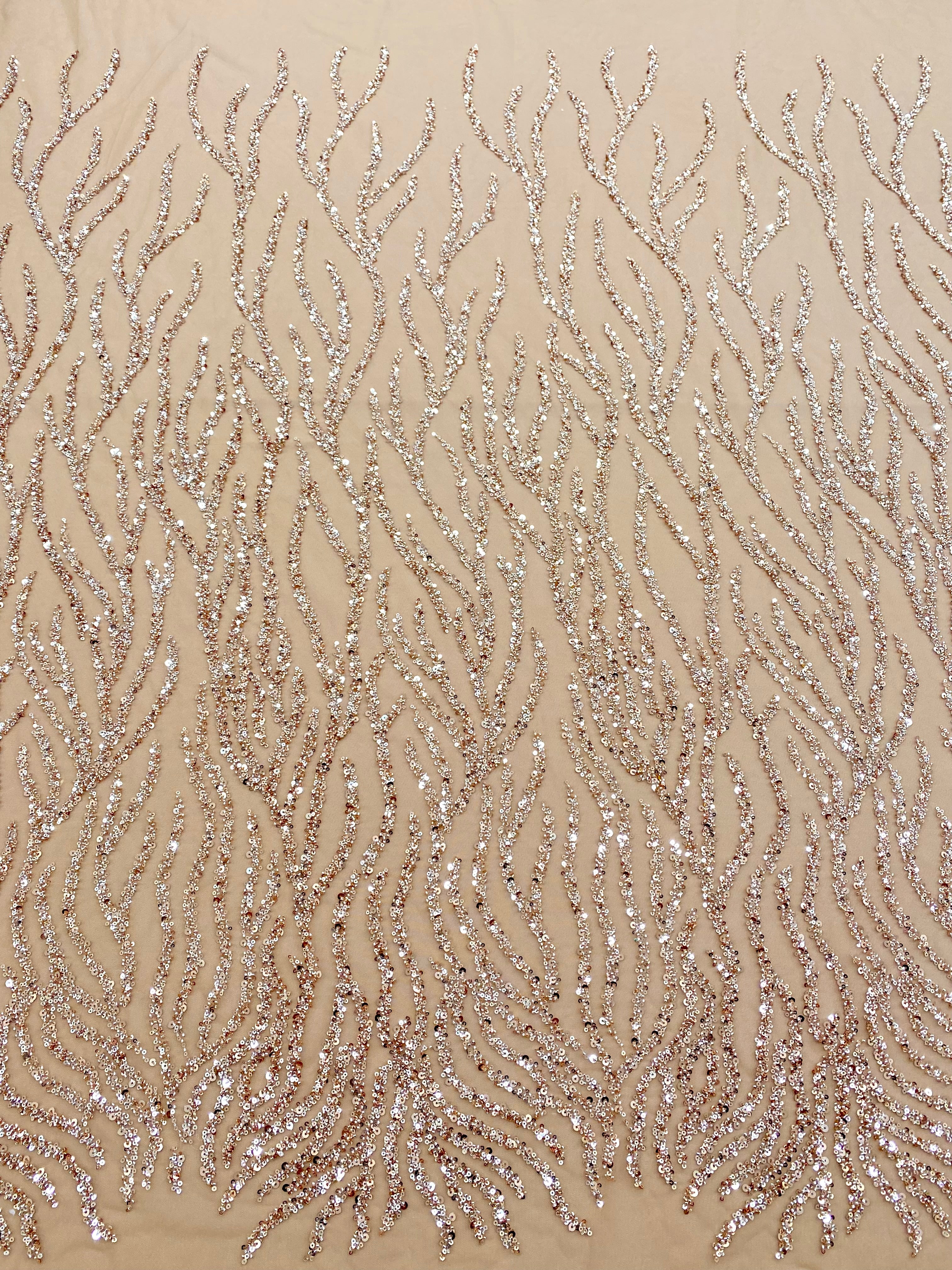 Dantela Couture Auriu Rose cu Siraguri, cu Margele si Paiete