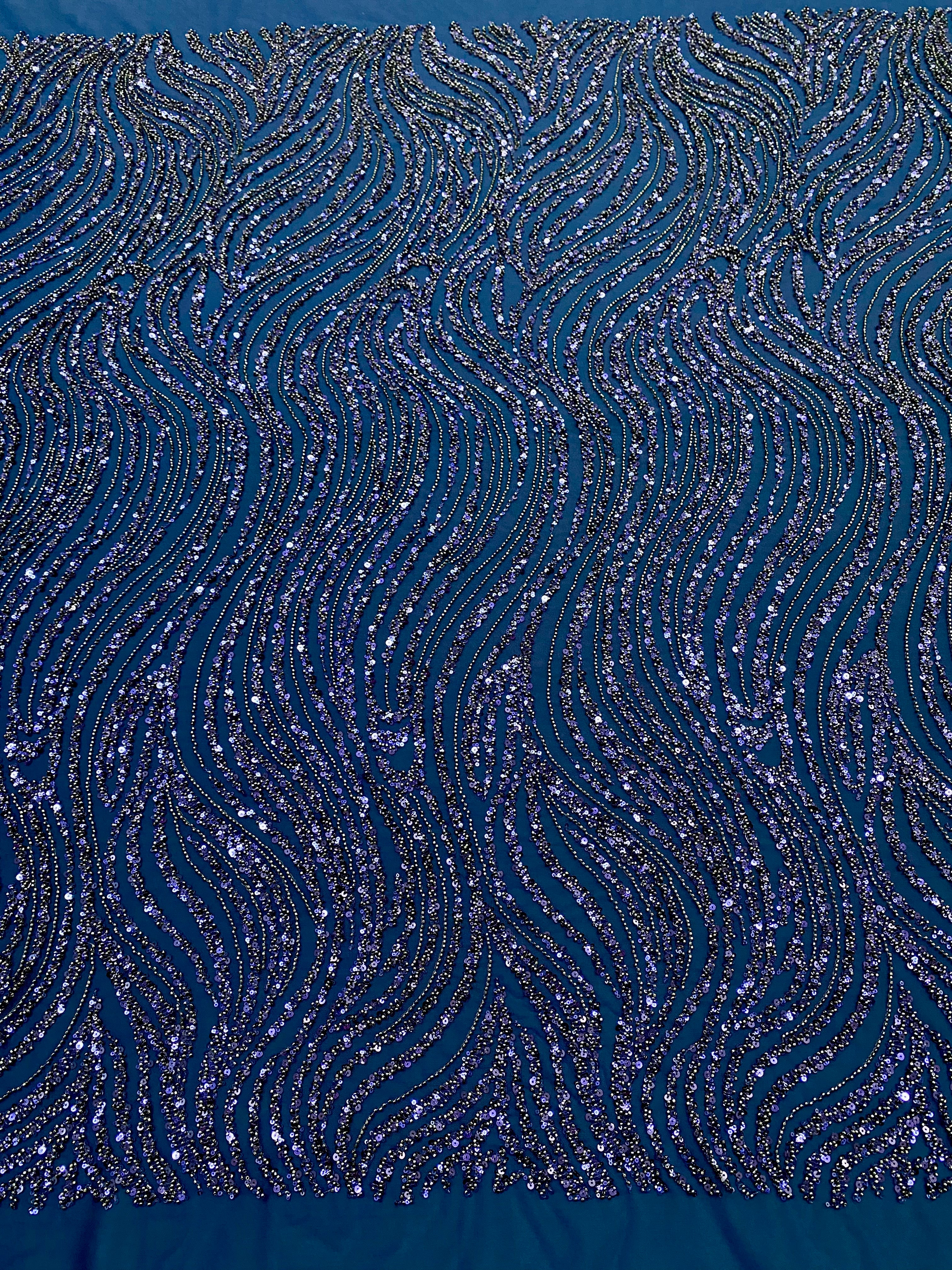 Dantela Couture Bleumarin cu Model Liniar, cu Margele si Paiete