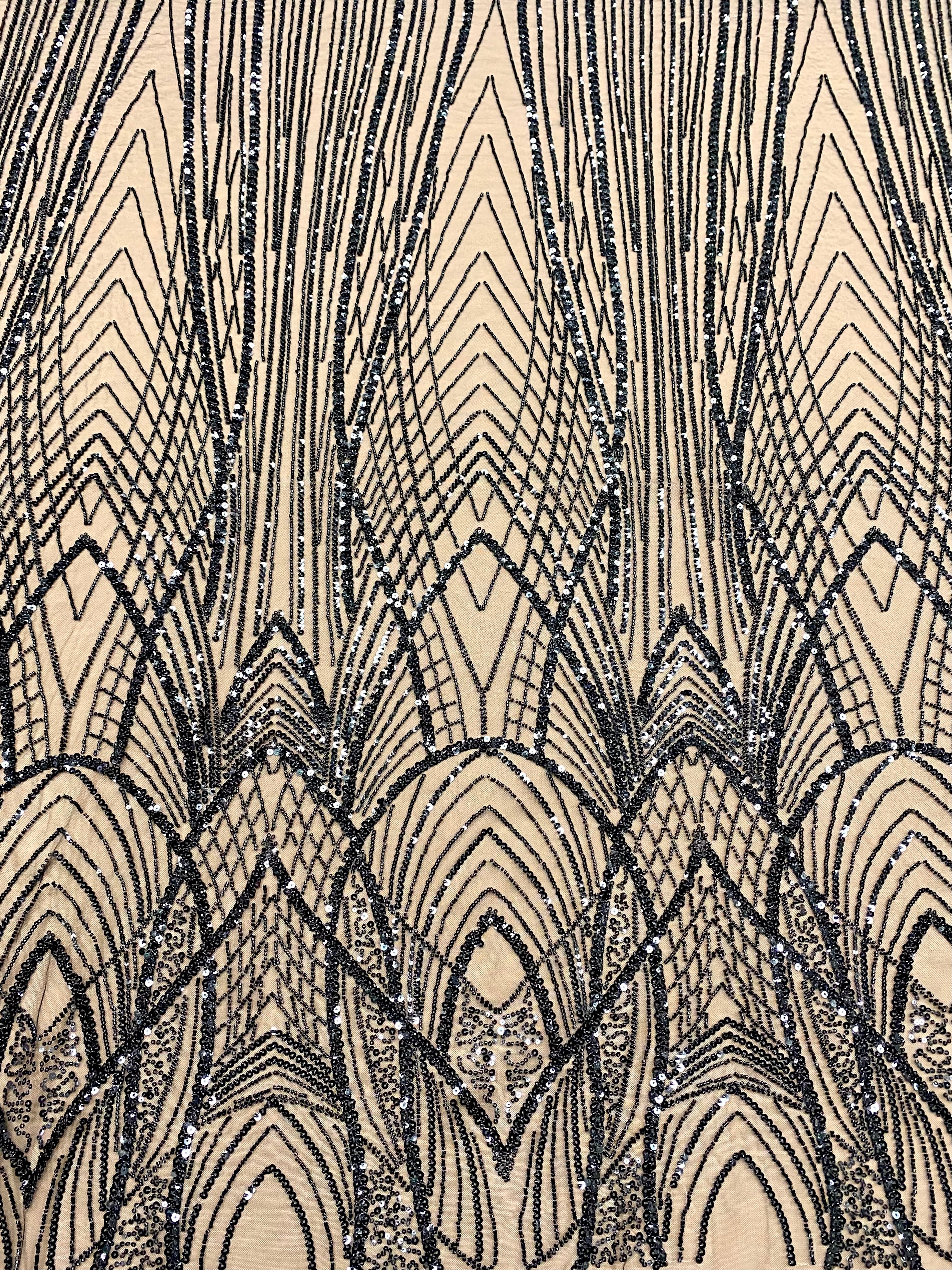 Dantela Couture Neagra cu Panou, cu Margele si Paiete