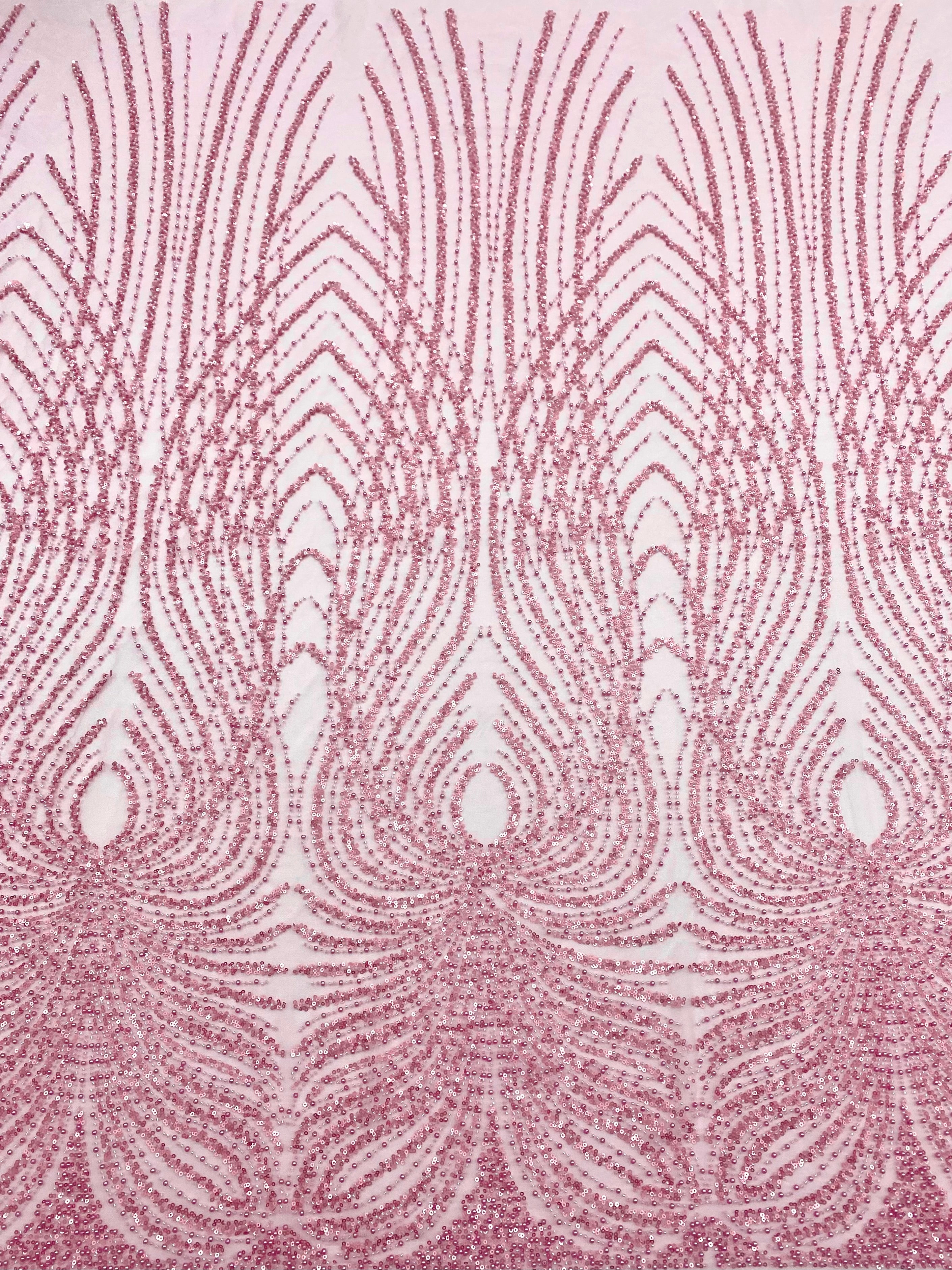 Dantela Couture Roz cu Panou, cu Perle, Margele si Paiete