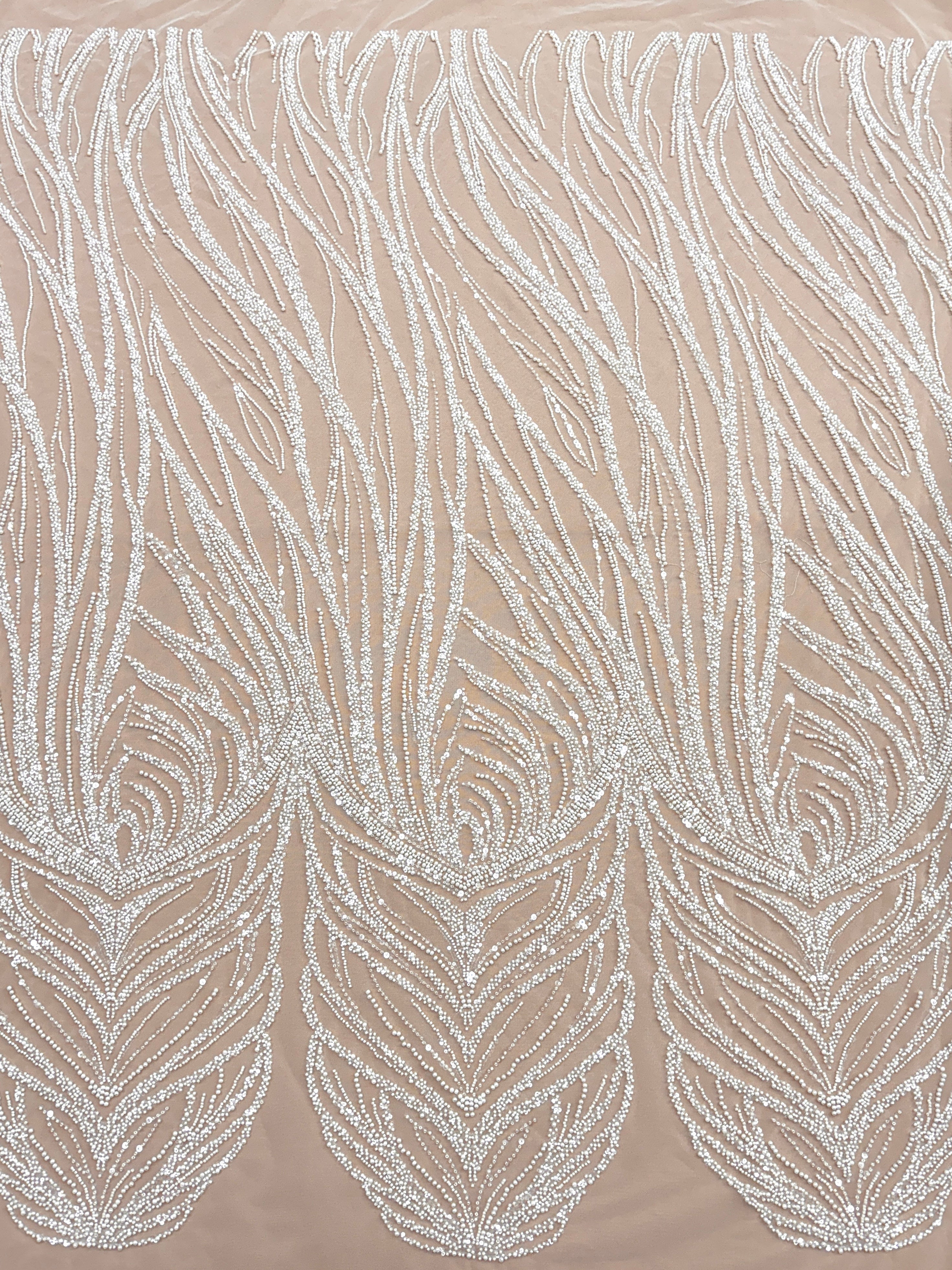 Dantela Ivory cu Model Geometric, cu Perle, Margele si Paiete