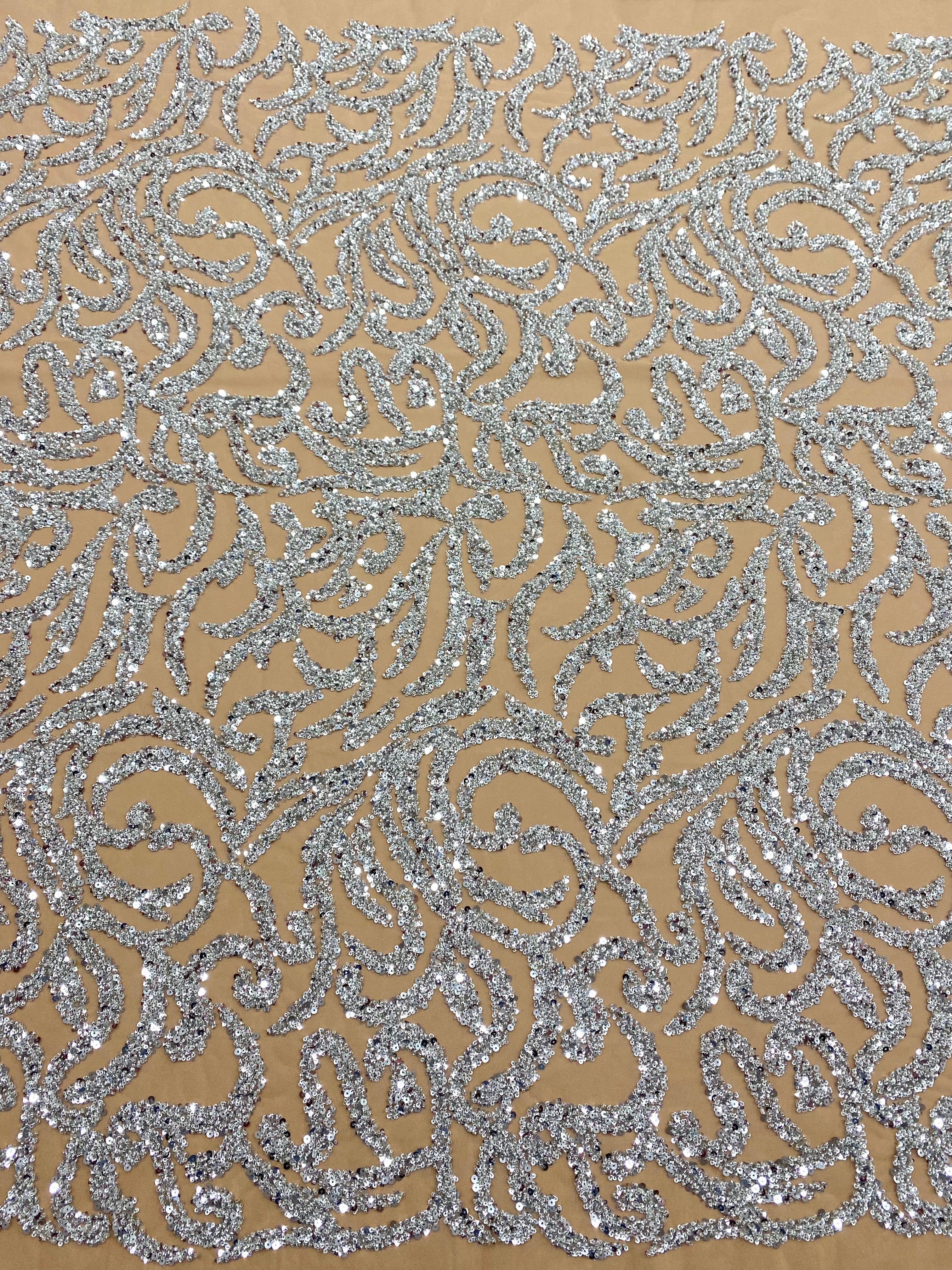Csipke Couture ezüst tüll nude alapon gyöngyökkel és flitterekkel