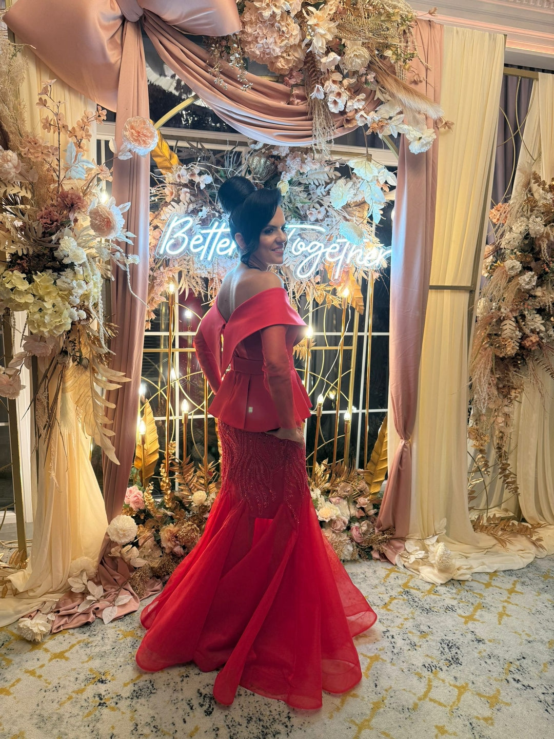 Povestea produsului: Dantela Couture Rosie cu Model Floral, Perle, Margele si Paiete