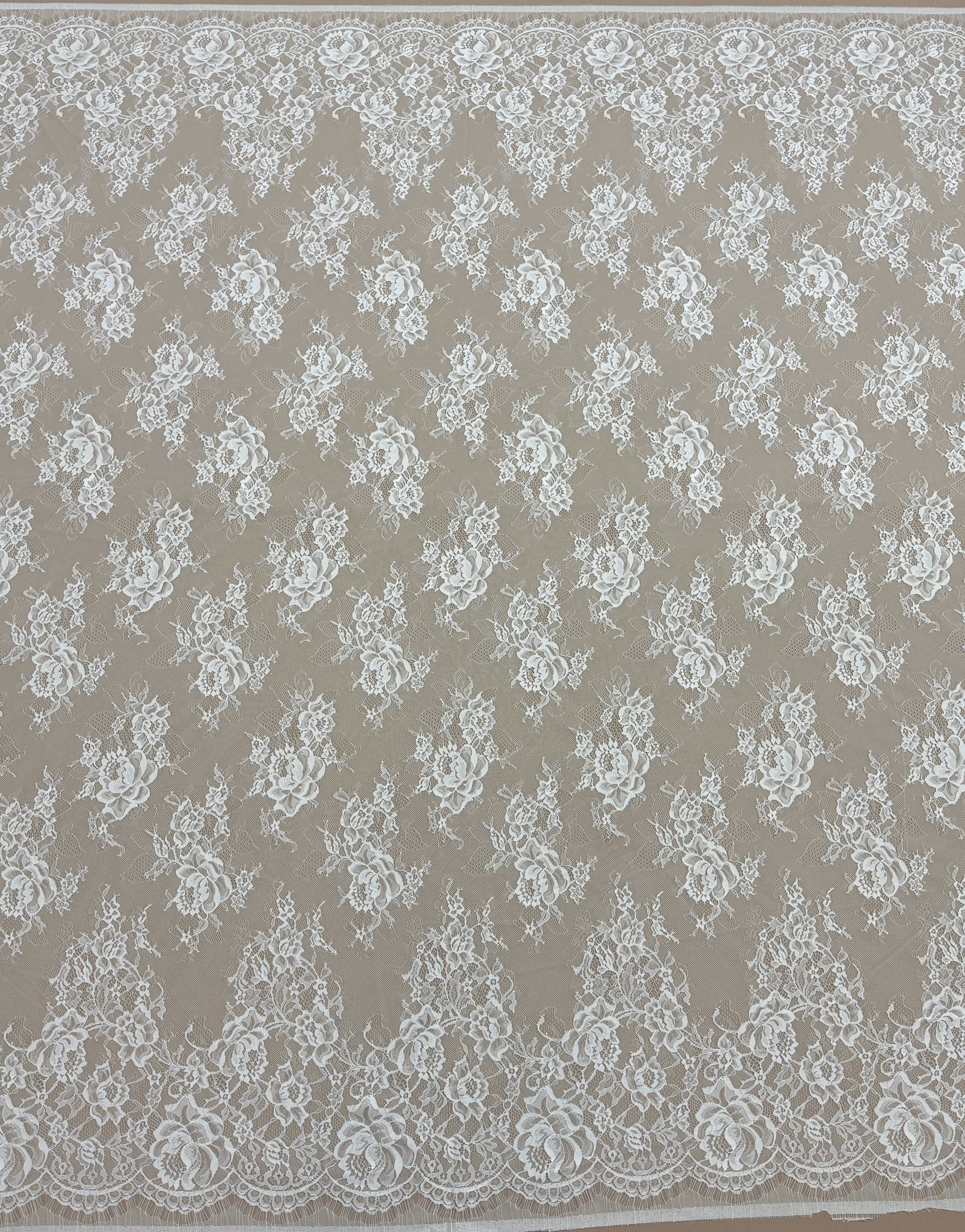 Livrata sub forma de cupon, aceasta dantela Chantilly ofera flexibilitate maxima pentru proiecte vestimentare de impact, fiind preferata de creatori, ateliere si designeri couture.