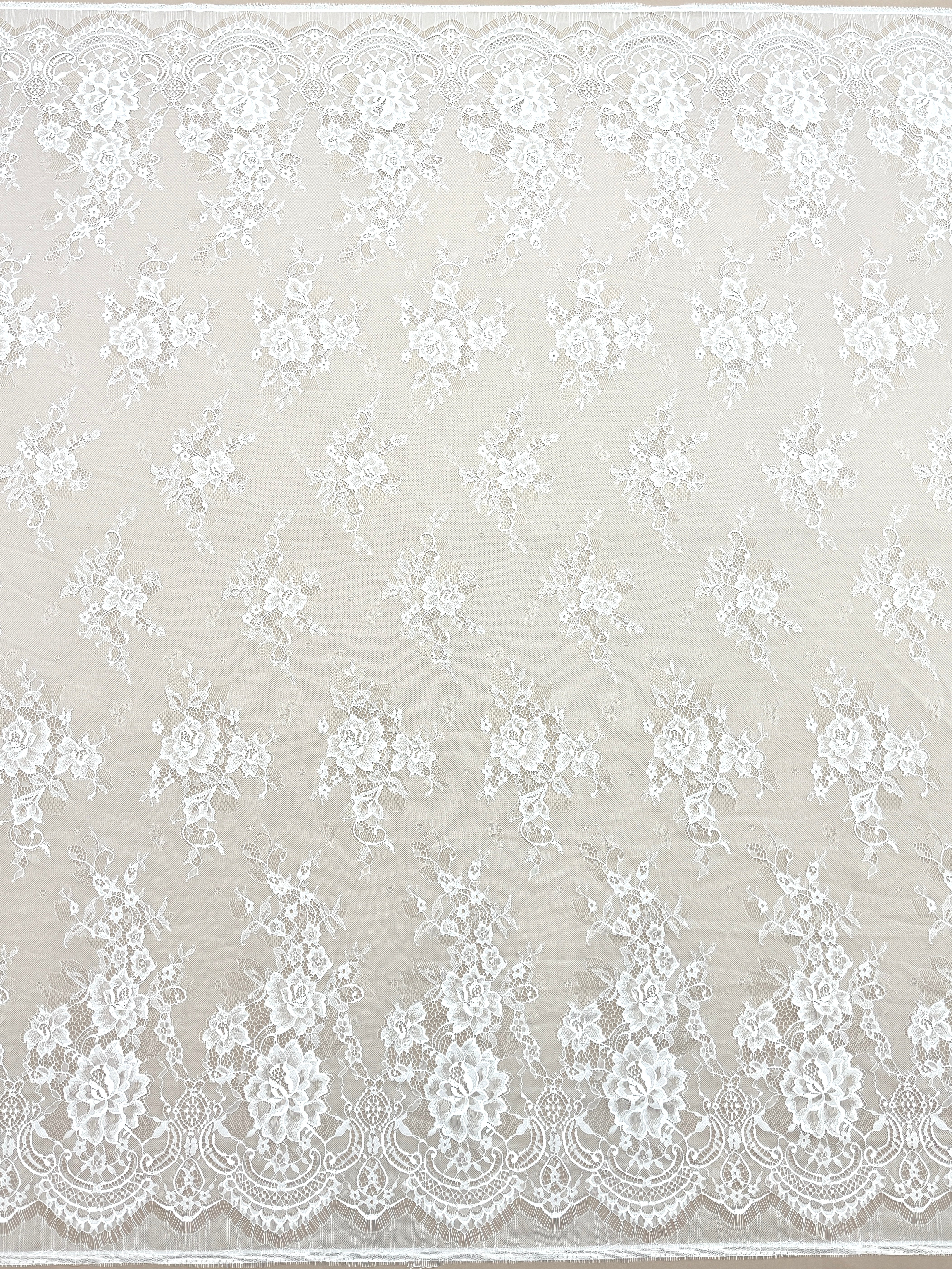 Livrata sub forma de cupon, aceasta dantela Chantilly ofera flexibilitate maxima pentru proiecte vestimentare de impact, fiind preferata de creatori, ateliere si designeri couture.