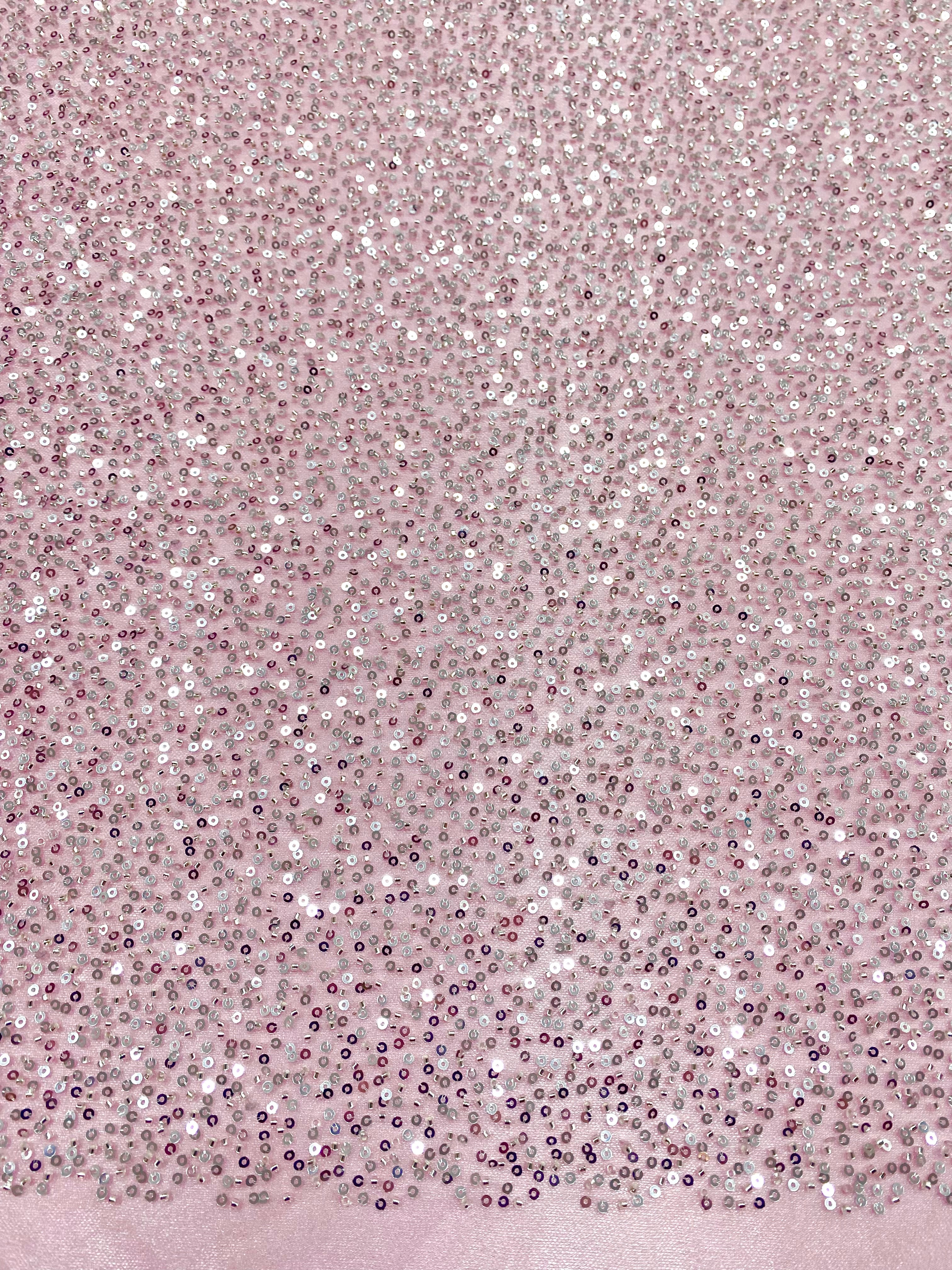 Dantela Couture Argintie pe Tulle Roz cu Model General, cu Margele si Paiete