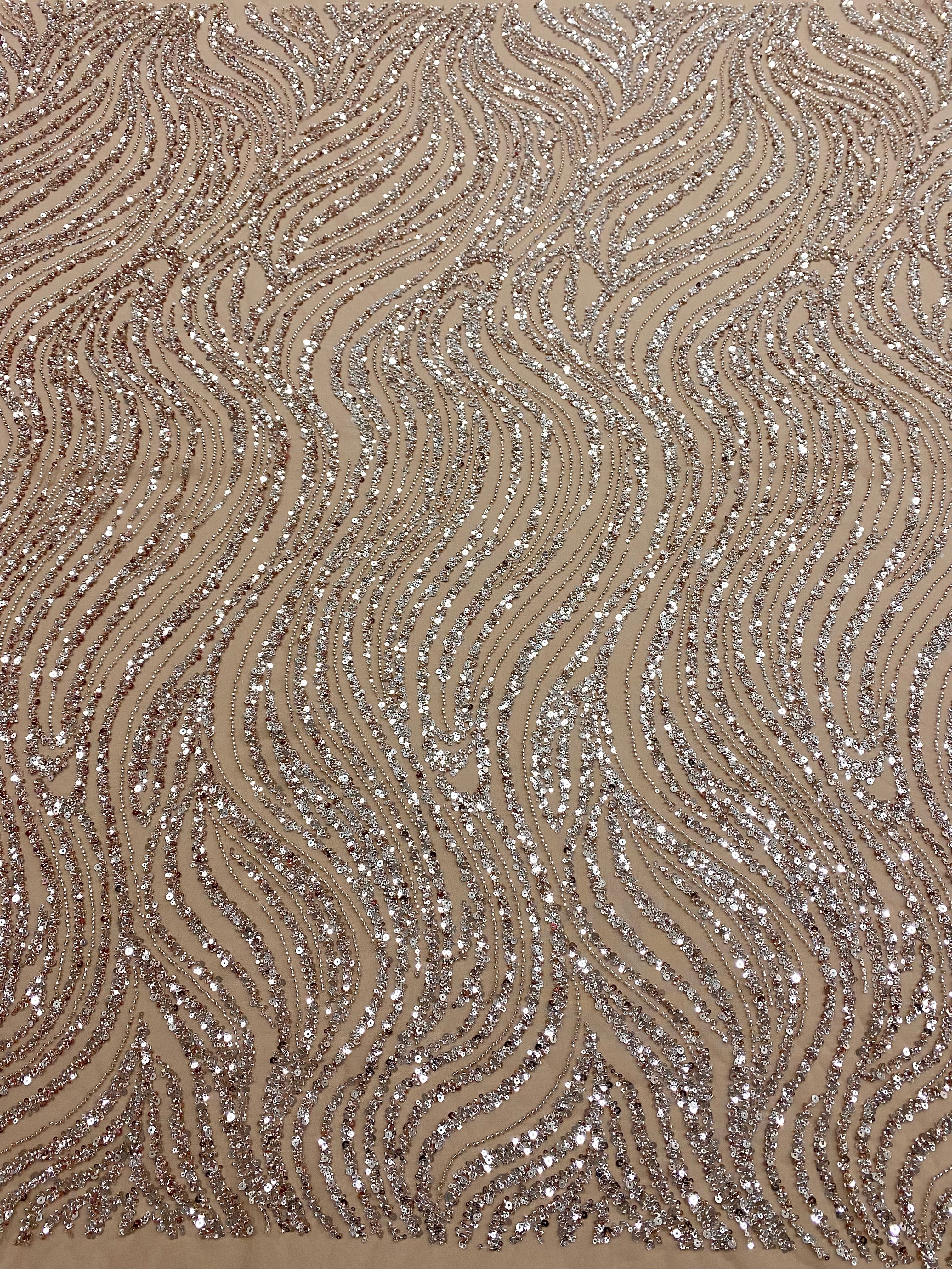 Dantela Couture Auriu Rose cu Model Liniar, cu Margele si Paiete