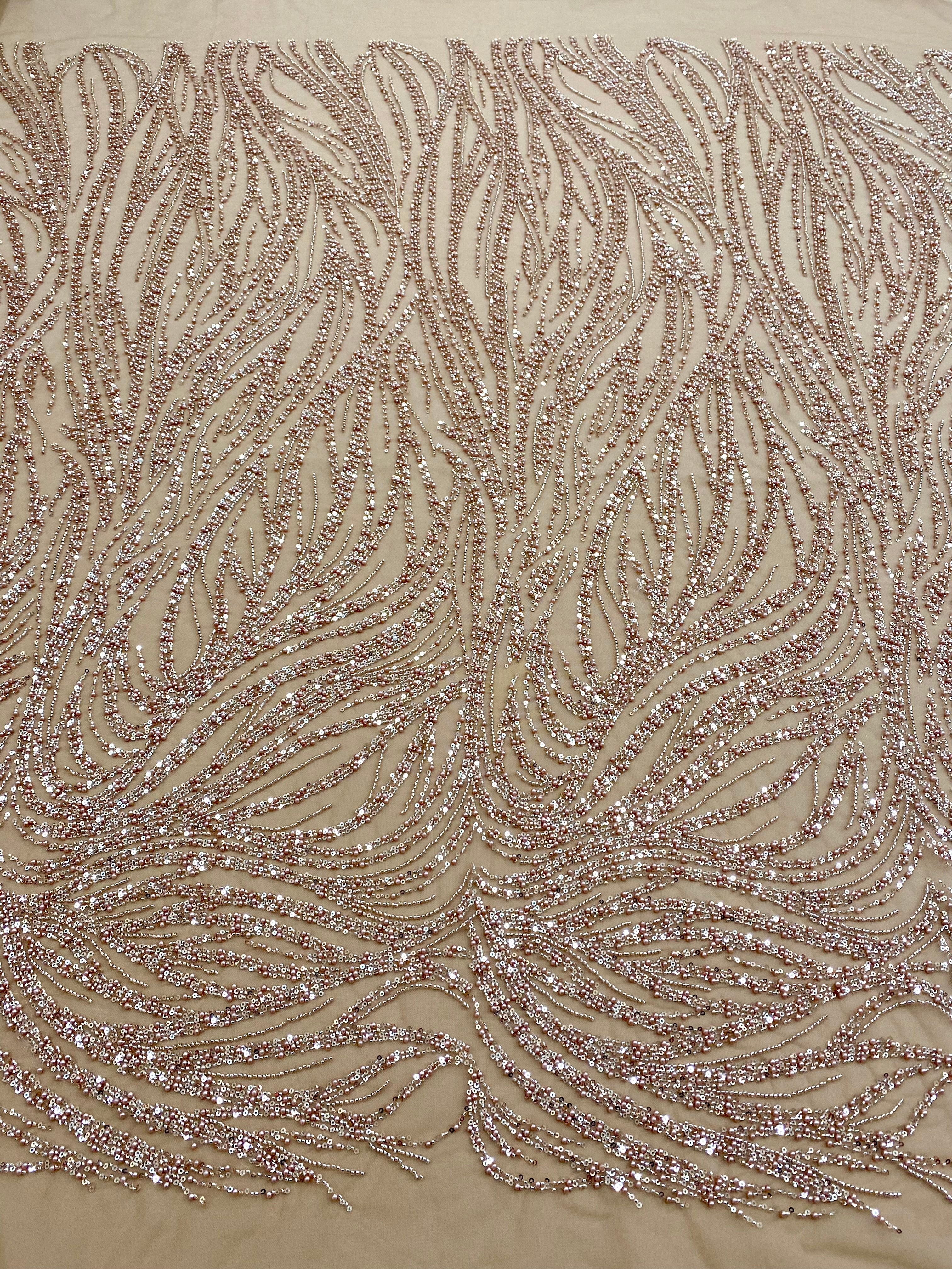 Dantela Couture Auriu Rose cu Model Liniar, cu Margele si Paiete