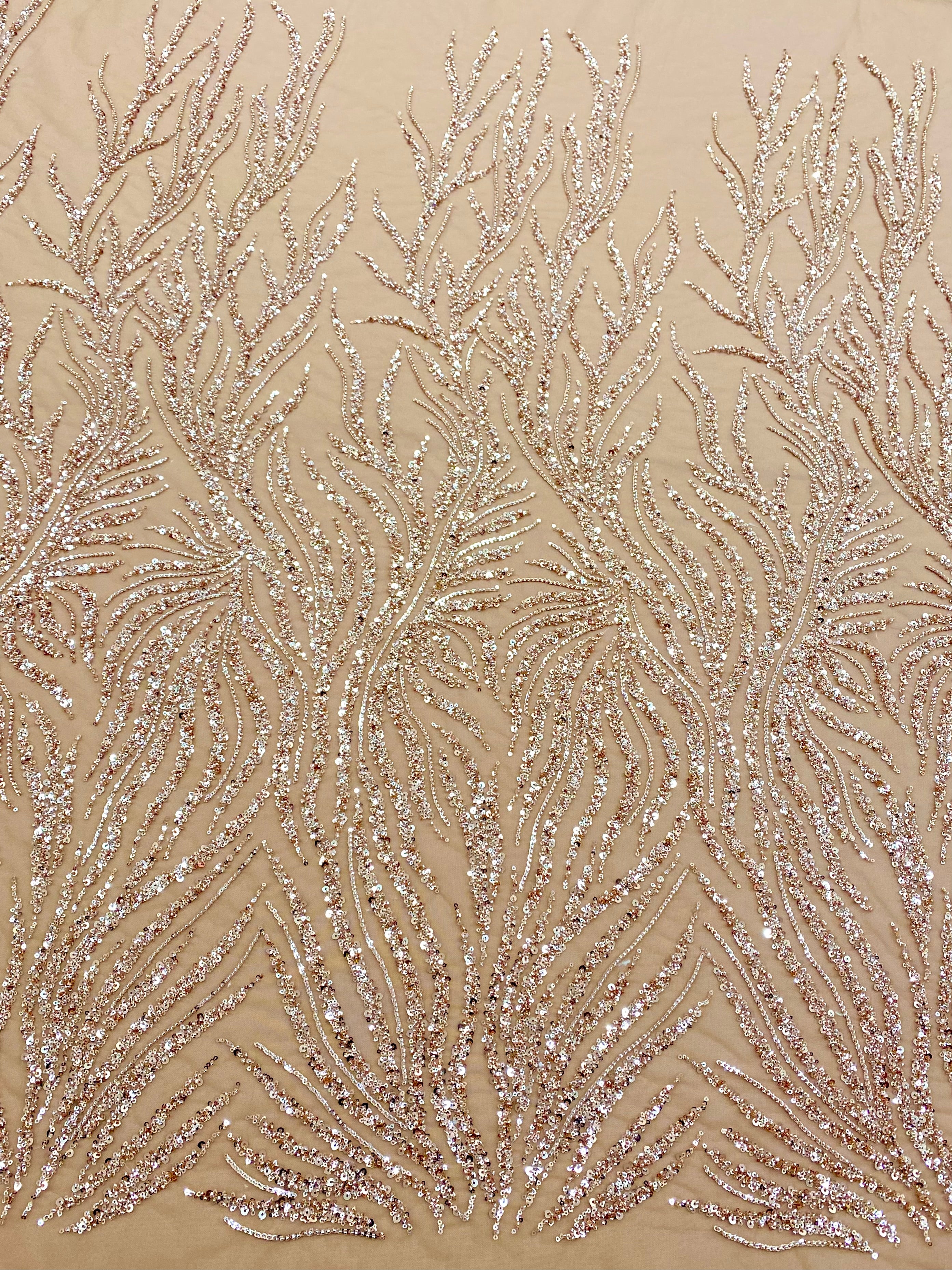 Dantela Couture Auriu Rose cu Siraguri, cu Margele si Paiete