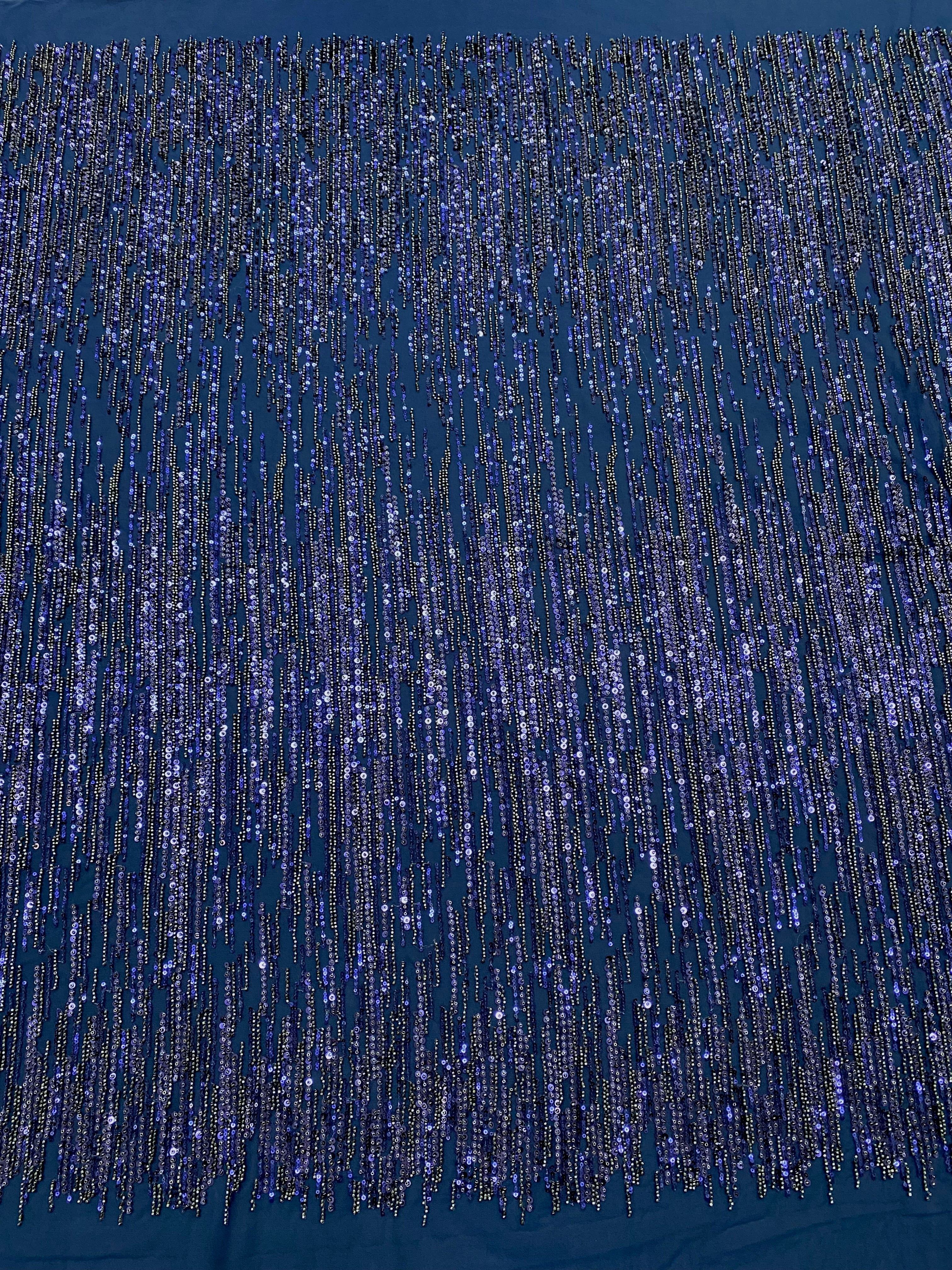 Dantela Couture Bleumarin cu Model Liniar, cu Margele si Paiete
