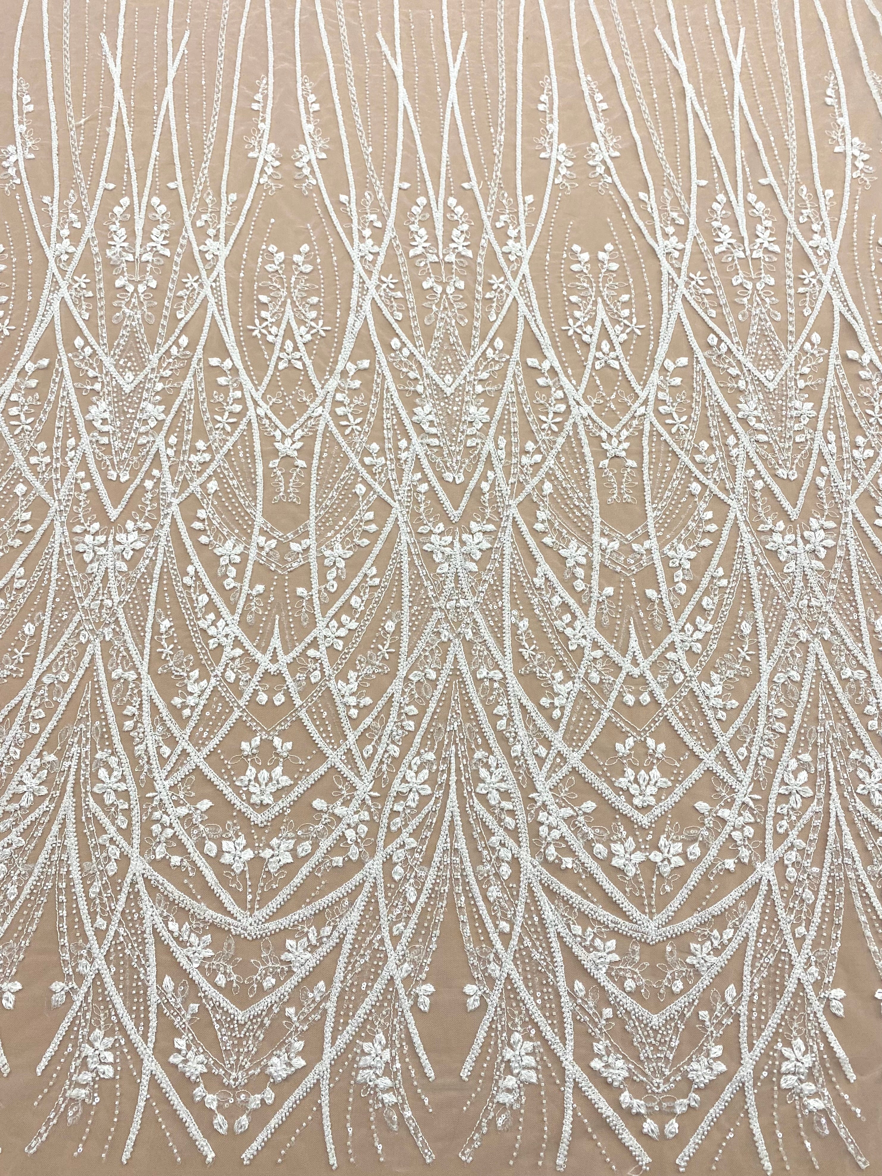 Dantela Couture Ivory cu Model Geometric, cu Perle, Margele si Paiete