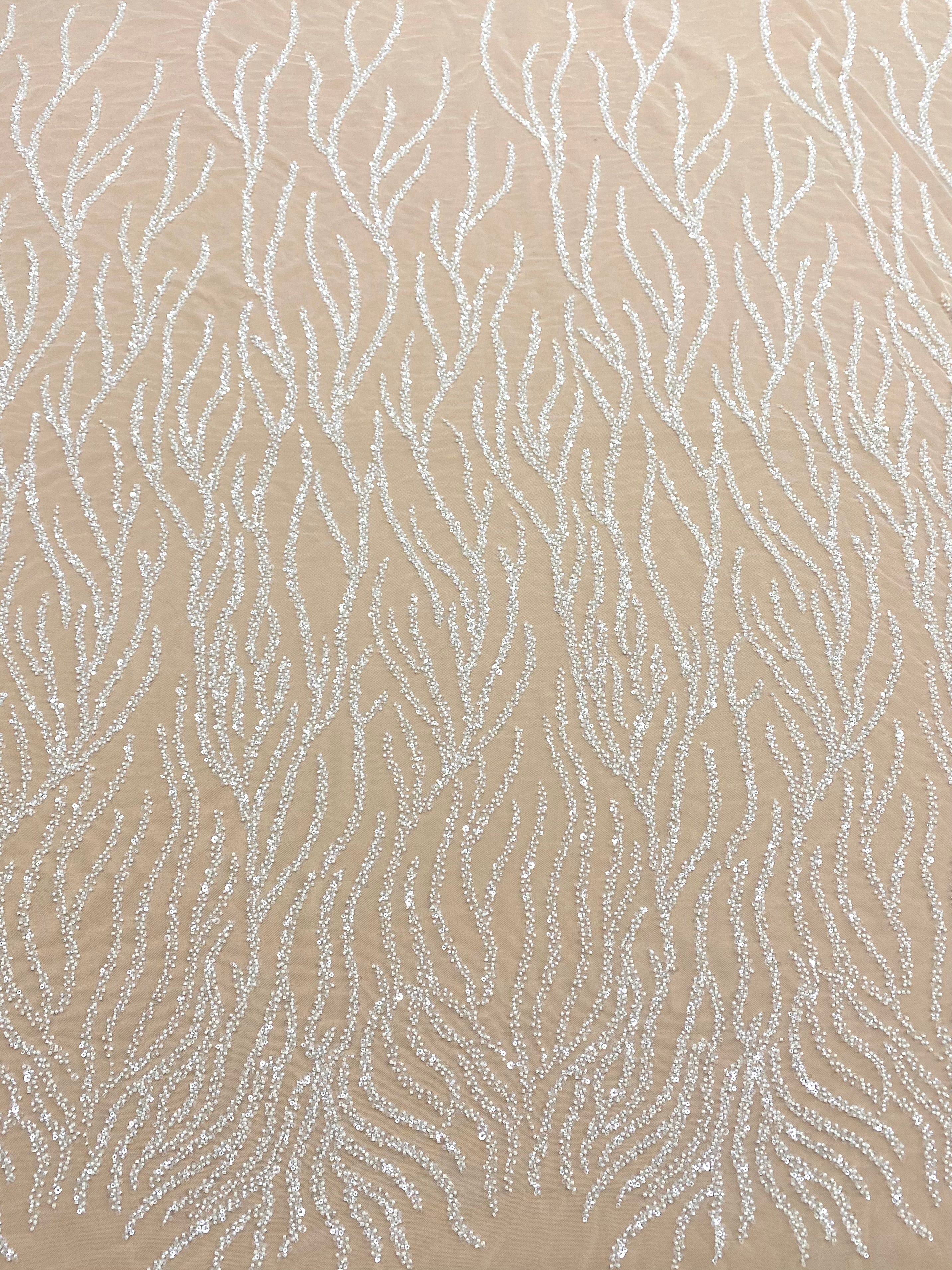Dantela Couture Ivory cu Siraguri, cu Margele si Paiete