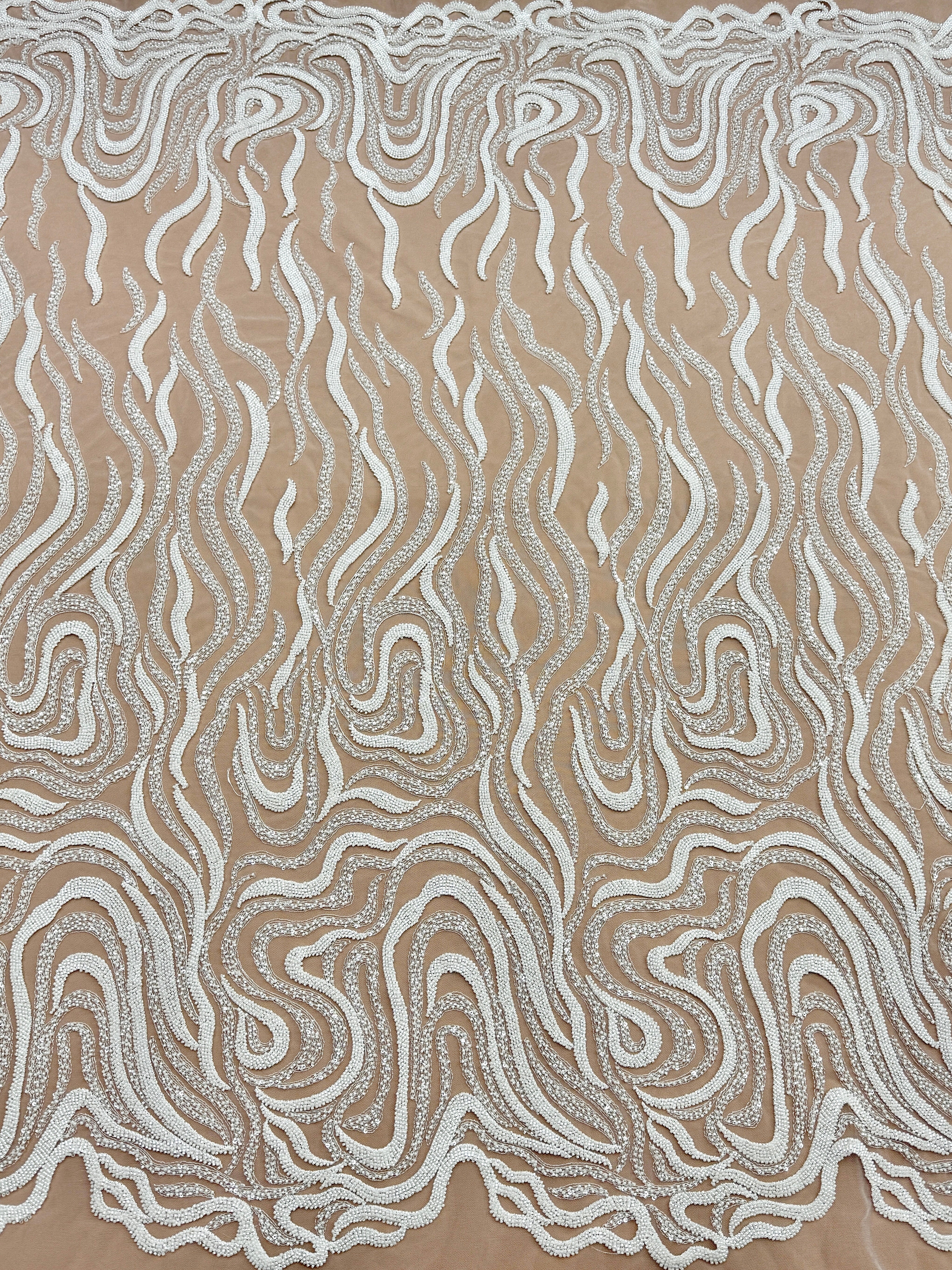Dantela Ivory cu Model Geometric, cu Margele si Paiete